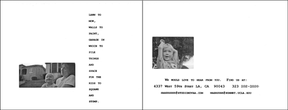 From the start, the Studio has been as interested in two dimensional problems as it has been in three dimensional problems. Graphics projects are also free of the constraints that are germane to architecture, making graphic design more like a walk in the park than a workout at the gym. Even so, graphics problems and architectural ones are connected. With both, we attempt to convey ideas in two dimensions. For these ideas to live, they must be transformed - one relies on the imagination to make the ideas live and become spatial; the other's main purpose is to represent a three dimensional object.