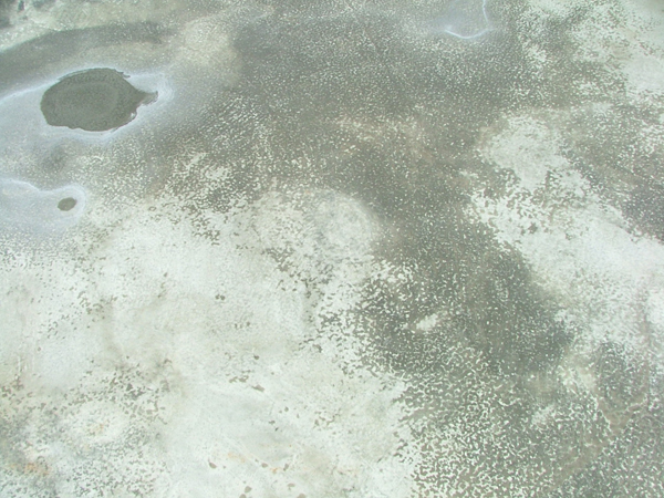 The dinning room slab showing a circular pattern from the 'final touch' on the concrete. It was supposed to be linear running with the long direction of the house. Short of ripping out and starting over, finishing mistakes are very hard to correct. Most efforts at doctoring poured concrete make it look worse, exaggerating the problem rather than concealing them.