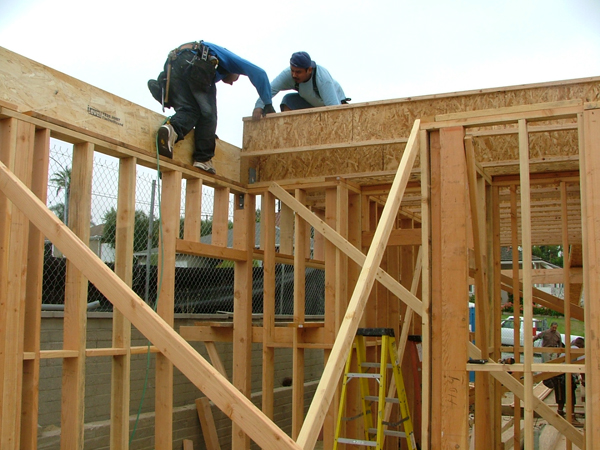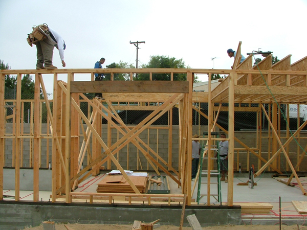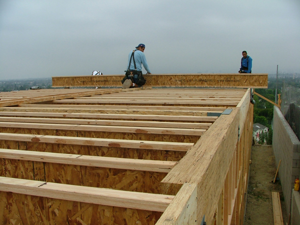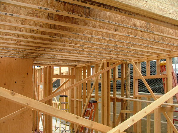 Floor joists in for the second floor, here at the garage looking towards the balance of the house.