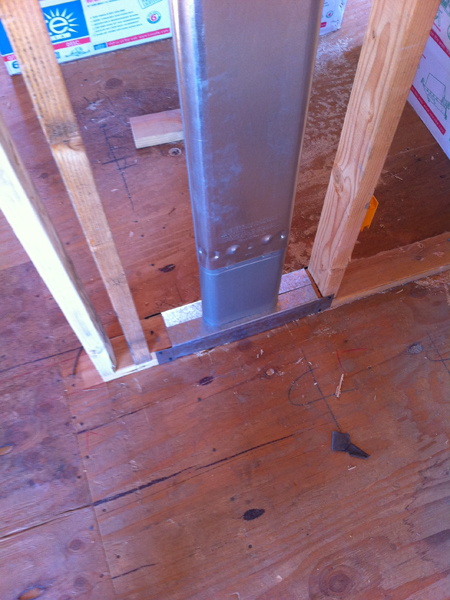 A rigid metal flue vent for the water heater (in the garage below).