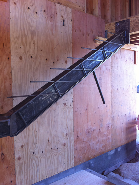 Looking down the stair stringer, ready for the wood treads.